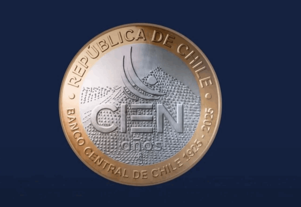 El Banco Central de Chile presentó una nueva moneda de $100 con motivo de su centenario, bajo el lema «Una moneda, cien años de historias». El diseño conserva las dimensiones actuales, pero incorpora el logotipo del aniversario y la Cordillera de Los Andes como fondo. Esta pieza no reemplazará al modelo vigente: ambas coexistirán desde el 21 de julio junto con la antigua versión monometálica, emitida hasta el año 2000.