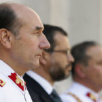 En una pancarta, Margareth Baduel, hija del general retirado Raúl Baduel, exministro de Defensa del fallecido líder socialista Hugo Chávez (1999-2013), mostró el rostro de su padre, detenido por segunda vez tras ser señalado de «traición a la patria».