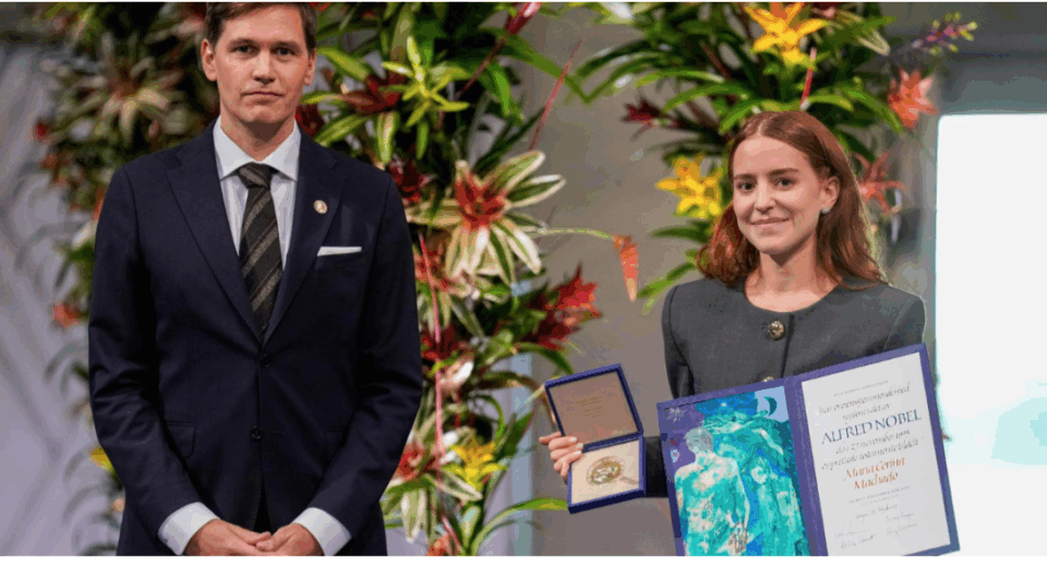 La ceremonia del Premio Nobel de la Paz se realizó este miércoles en Oslo, donde Ana Corina Sosa recibió el galardón en nombre de su madre, María Corina Machado, quien no pudo asistir debido a razones de seguridad. Durante el acto, el presidente del Comité Noruego del Nobel destacó el rol de Machado como símbolo de la lucha democrática en Venezuela y recordó la situación de presos políticos que siguen enfrentando graves vulneraciones en su país.