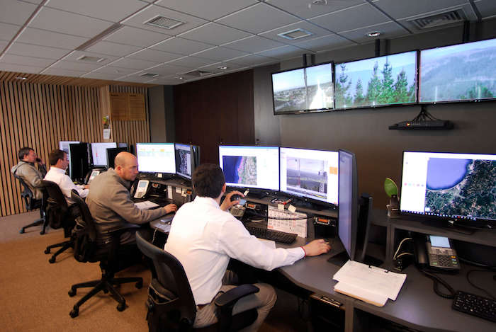 Las cámaras robot son monitoreadas desde las Central de Protección de ARAUCO, con base en Concepción, donde trabajan 13 despachadores y 6 supervisores, sobre la base de 5 zonas de despacho y 7 zonas radiales.
