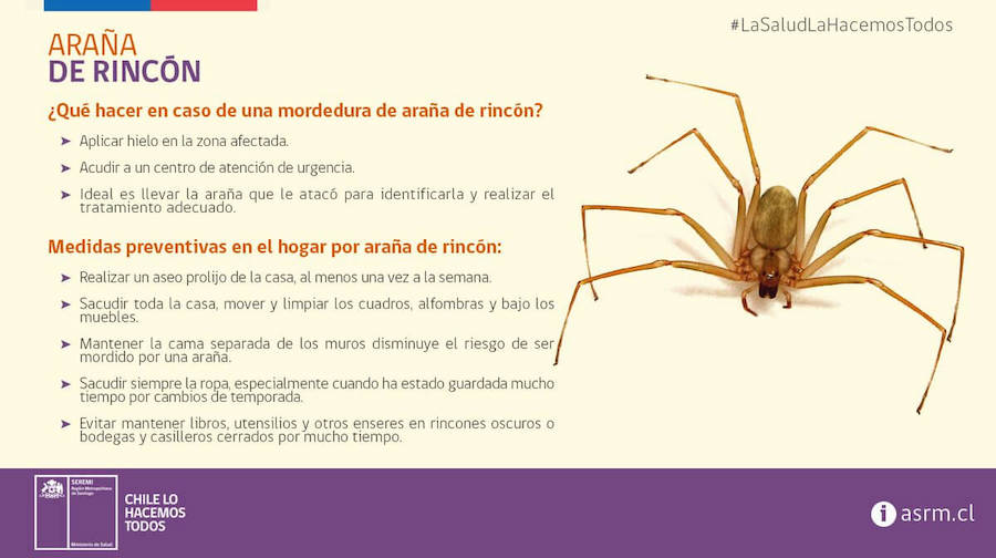 “Estos son lugares típicos donde frecuentan las arañas de rincón. Si somos capaces de adquirir estos simples hábitos estaremos previniendo la mayoría de los accidentes que ocurren con ellas en los hogares”, añadió.