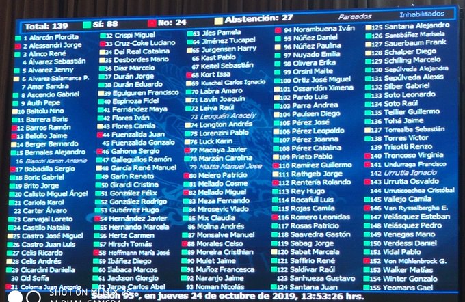 La iniciativa contó con 88 votos a favor, 24 en contra y 27 abstenciones, por lo cual ahora pasará a la Comisión del Trabajo para luego ser revisada en particular, para posteriormente ser analizada en el Senado.