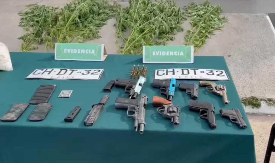 El Oficial agregó que tras la denuncia de robo en lugar no habitado comenzaron las diligencias de los Carabineros dando prontamente con el paradero de los antisociales, las especies sustraídas del robo y la cantidad de 7,4 kilos de pasta base de cocaína, cinco plantas de marihuana, un vehículo con encargo vigente por robo, ocho armas de fuego (tipo pistolas), 12 cartuchos de calibre 9 ML y 7 cartuchos de calibre 38 ML.