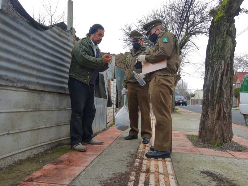 Personal de la Tercera Comisaría “Talca” y de la Cuarta Comisaría “Cancha Rayada” de la capital maulina, se encuentra por estos días distribuyendo mascarillas reutilizables a personas en situación de calle de la comuna, iniciativa que tiene como objetivo prevenir los contagios del Covid-19 en este segmento de la población.