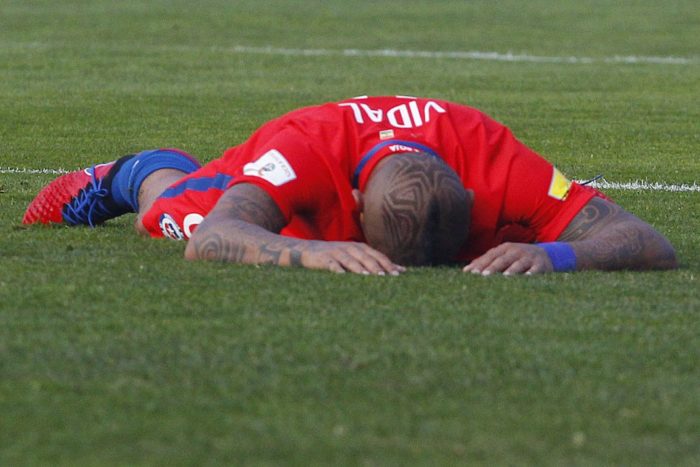 Pese a seguir sufriendo constantemente por los reiterados ataques rivales, los pupilos de Pizzi fueron encontrando lucidez y precisión en sus llegadas. Fue así como a los 40′, Vidal casi encontró el gol, tras rematar desviado luego de un pase de Isla. Fue la ocasión más clara de Chile en todo el primer tiempo.