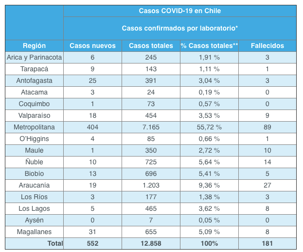 Según el último reporte entregado este sábado por el Ministerio de Salud, desde Punta Arenas, en las últimas 24 horas se registraron 552 nuevos casos de coronavirus, lo que da un total de 12.858 contagiados.