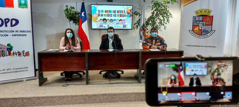 En conferencia de prensa, el alcalde de la comuna costera junto a la coordinadora de la Oficina de Protección de Derechos de los Niños, Niñas y Adolescentes (OPD) Constitución-Empedrado, Gizella Espinoza; y Orlando Retamal representante de ARE y la Red Comunal de la Infancia, entregaron los detalles de esta conmemoración.