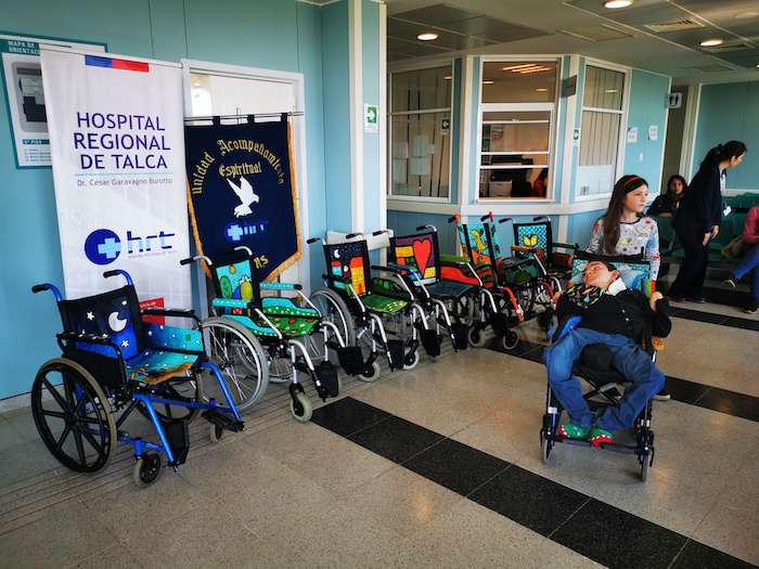 Ahora, con nueve sillas de ruedas intervenidas, se hace más patente la necesidad de una intervención mayor, que permita decorar las salas de hospitalización pediátricas a través de murales temáticos que hagan más acogedora la estadía de los niños y niñas en el área médico quirúrgico infantil del hospital. Al respecto, la Sra. María Teresa Lepe, Presidenta de la Unidad de Acompañamiento Espiritual del HRT, organización que coordina y reúne a todos los voluntariados que trabajan de manera permanente en el hospital de talca, comentó que “inmediatamente decidimos apoyar la idea para comenzar con las sillas del área pediátrica, ya que contamos con un fondo de ayuda social que reúnen todos los voluntariados que conforman la Unidad de Acompañamiento Espiritual del Hospital, sin embargo para realizar la intervención con los murales temáticos en las salas de espera del área pediátrica, necesitamos el apoyo de la comunidad, por ello desarrollamos una campaña, donde ponemos a disposición nuestra cuenta, para recibir el aporte de la comunidad”.