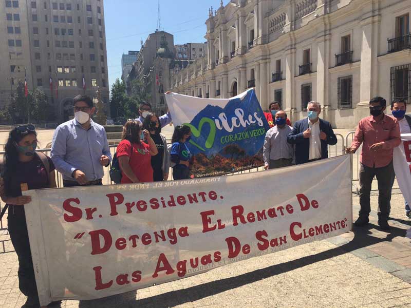 Hasta el palacio de La Moneda en Santiago arribó esta jornada de día jueves el alcalde de San Clemente, Juan Rojas, junto a concejales, dirigentes y representantes de organizaciones sociales, para entregar una carta dirigida al Presidente de la República, Sebastián Piñera, en la cual le solicitan intervenir para detener el remate de derechos de agua de los ríos Lircay, Melado y Colorado.
