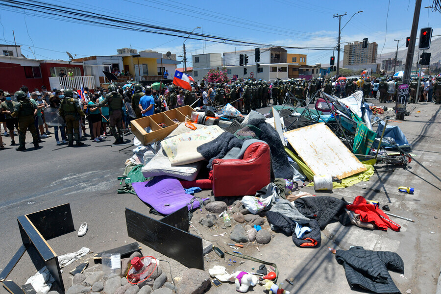 “Un grupo de descolgados (de la marcha) concurrió a determinado sector de Iquique con la finalidad de ejecutar algún tipo de maniobra, respecto de algunos venezolanos que se encontraban ya en ese lugar con algunas carpas levantadas”, relató el jefe de la zona de Tarapacá de Carabineros, Iván Monje.