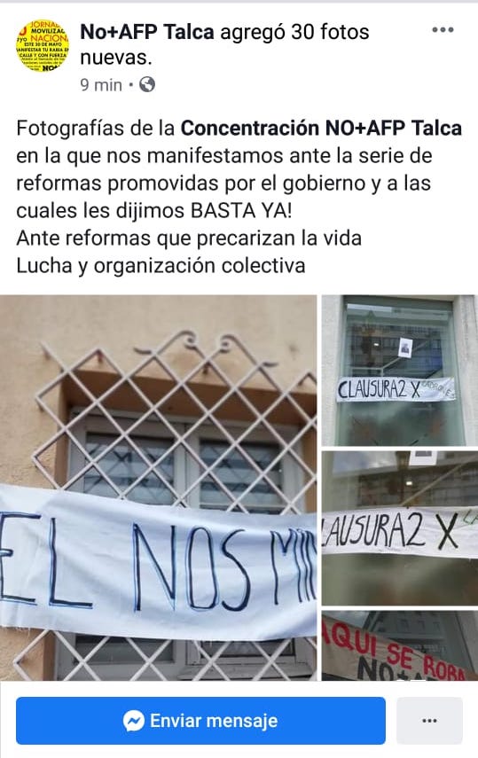 Si bien no hay certeza del origen del grupo, las fotografías publicadas a los 10 minutos de sucedido los hechos en el facebook del movimiento NO+AFP, establece una directa relación con ellos.