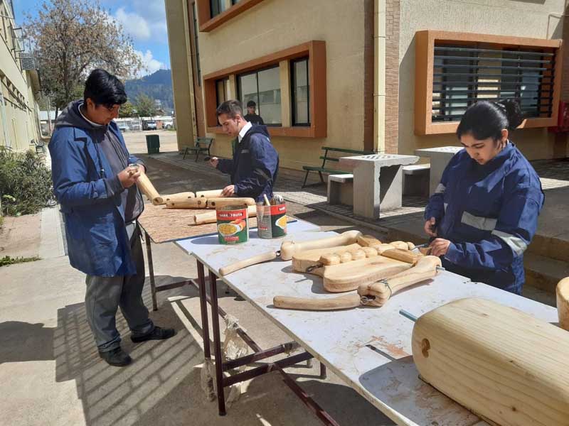 Alumnos del Liceo Industrial de Talca están elaborando los carros alegóricos, inspirándose en personajes de la popular película «Coco».