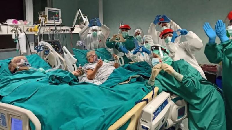 Enfermeras italianas ayudan a pareja de ancianos con Covid-19 a celebrar sus bodas de oro en el hospital