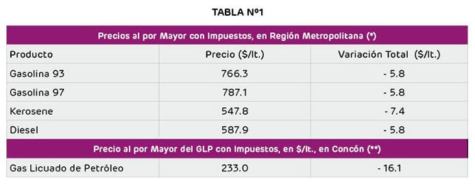Según anunció la Empresa Nacional del Petróleo (ENAP), las bencinas de 93 y 97 octanos bajarán 5,8 pesos por litro, mientras que el diesel lo hará en ese mismo valor.
