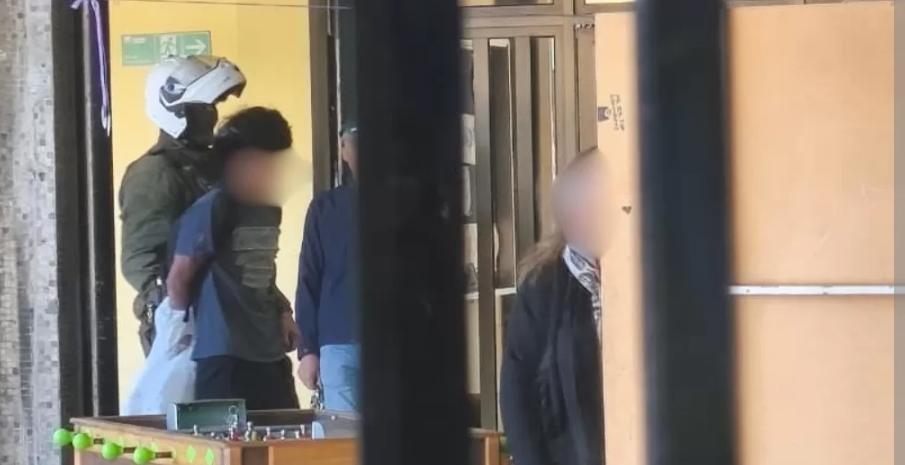 Según antecedentes recabados por BioBioChile, junto con el lanzamiento de bengalas, un estudiante de tercero medio fue detenido en el marco del procedimiento por portar un artefacto incendiario.