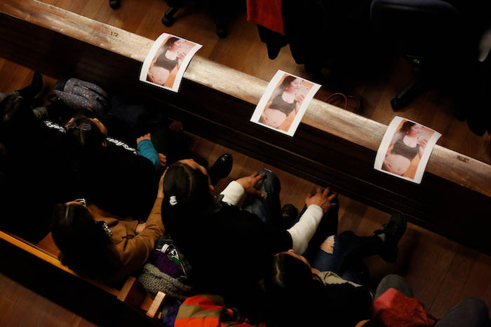 Según se pudo constatar en la audiencia, la joven, que estaba embarazada de siete meses, falleció por «asfixia con un lazo de género».