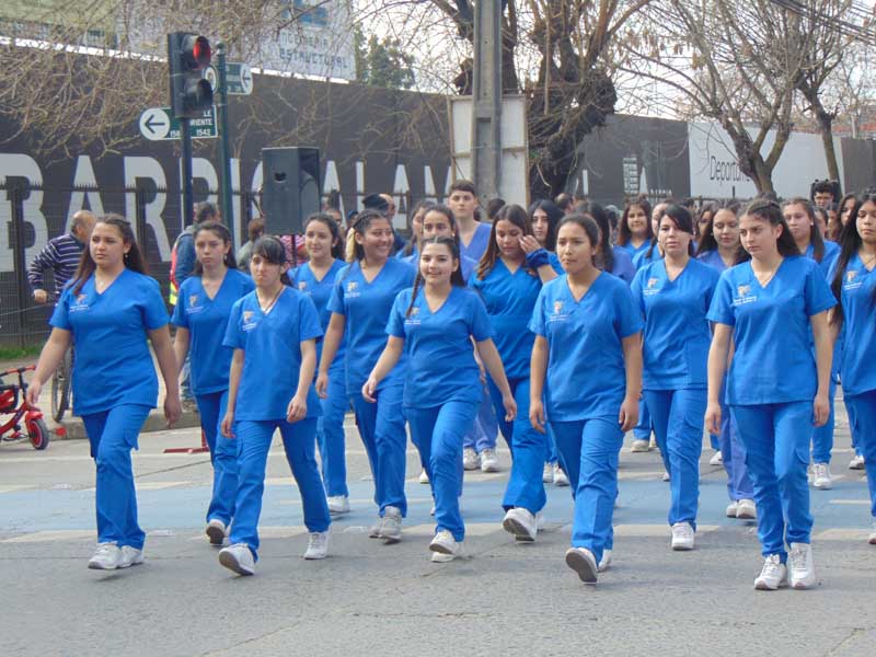 Alumnas del Liceo Técnico «Amelia Courbis» luciendo sus uniformes.