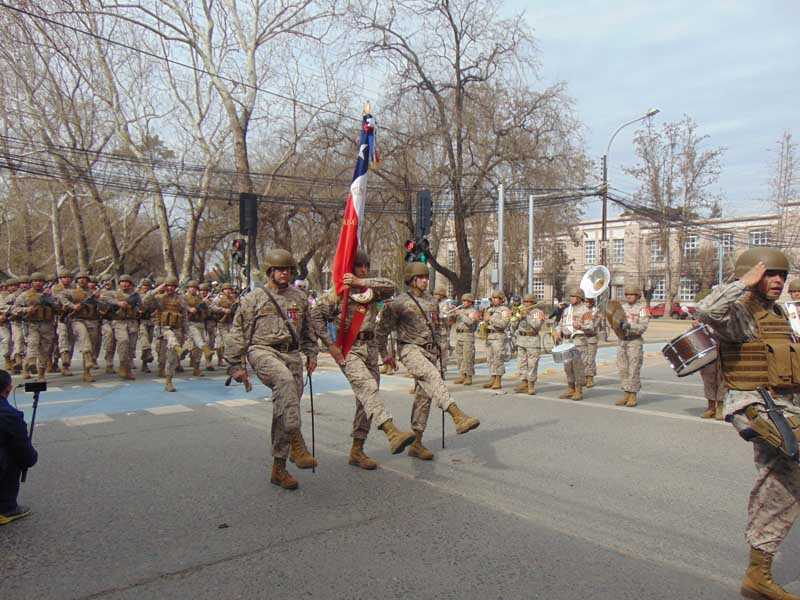 Al son de la marcha «Los Viejos Estandartes» desfiló la unidad de formación del Regimiento «Talca».