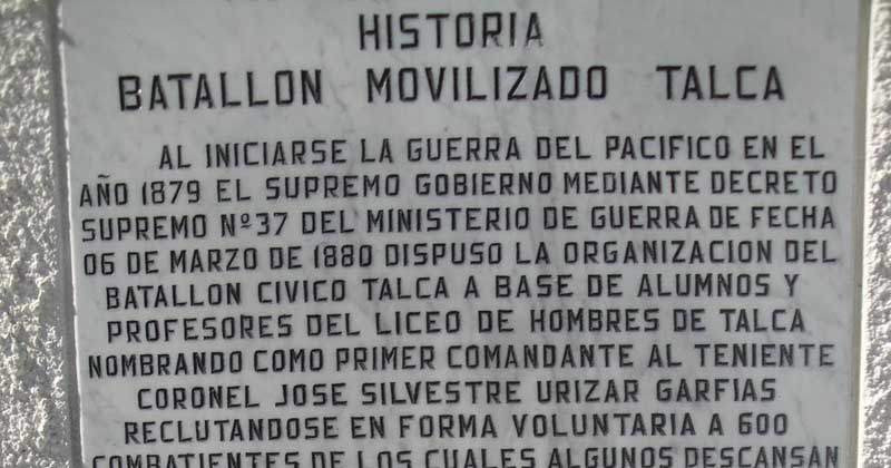Jóvenes estudiantes y profesores del hoy Liceo Abate Molina se unieron al Batallón Cívico de Talca en la Guerra del Pacífico, cuyo primer comandante fue José Silvestre Urizar, quien un 13 de enero de 1881 los lideró victoriosamente en la Batalla de Chorrillos.