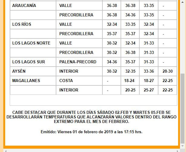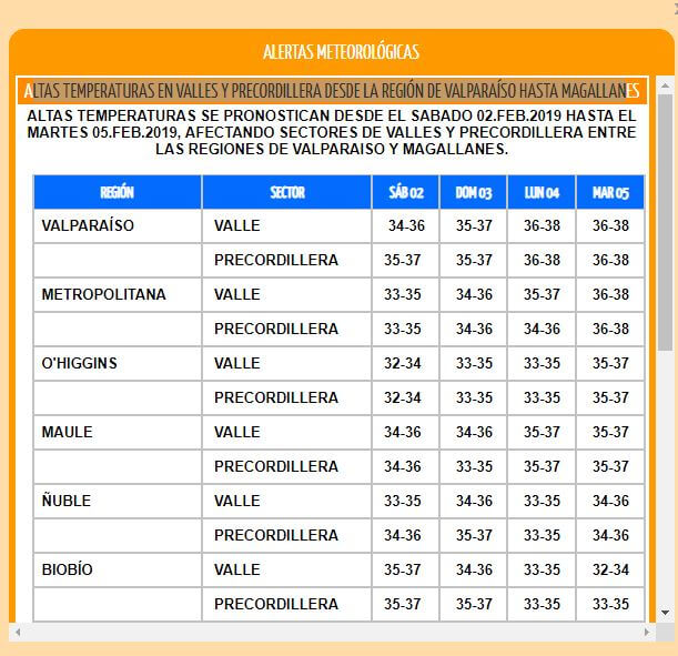 La Dirección Meteorológica de Chile emitió una “alerta” por altas temperaturas, las que irán desde la región de Valparaíso hasta Magallanes.
