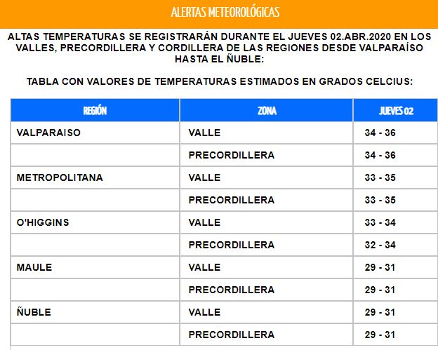 La Dirección Meteorológica de Chile emitió un aviso por un evento de altas temperaturas para este jueves 2 de abril.