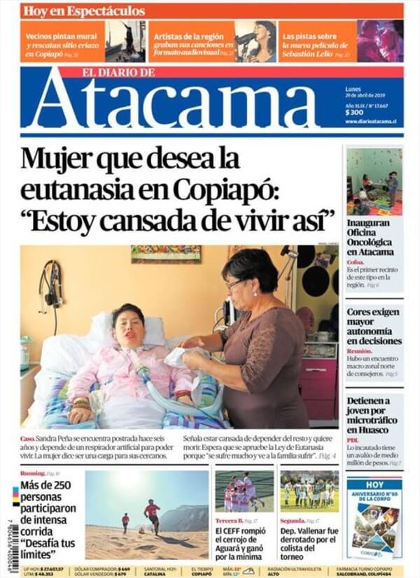 En una breve conversación con El Diario de Atacama, Sandra Peña comentó que «estar así no es fácil, estoy cansada de vivir así, siento que tengo de esclavos a mis papás».