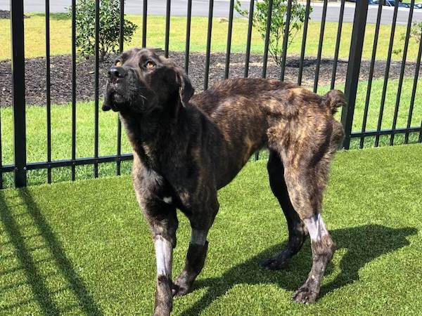 El can de raza mastín era mantenido en la casa de Elizabeth Lena James. Estaba desnutrido, demacrado y lleno de parásitos y gusanos. Pesaba solo 22 kilos, pero por su edad debía alcanzar cerca de los 40, por lo que estaba prácticamente en los huesos.