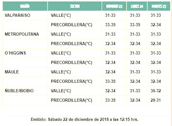 La Oficina Nacional de Emergencia del Ministerio del Interior, Onemi, declaró «Alerta Temprana Preventiva» para tres regiones del país por «ola de calor».