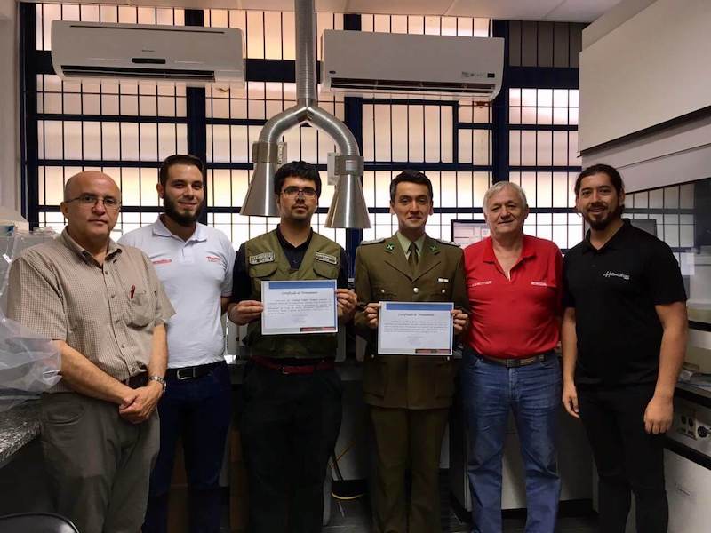 El Teniente Dixon Rivas Chávez, junto con bioquímico Cristián Valdés Vergara, ambos peritos de la Sección Criminalística de Carabineros de Talca, viajaron hasta Sao Carlos, Brasil, para realizar una capacitación teórica y práctica respecto de las prestaciones del equipo Espectrofotómetro de Absorción Atómica, modelo ICE 3500, con horno corrector zeeman y generador de hidruros, sus características tecnológicas, la descripción de su funcionalidad, sus equipos accesorios y software.