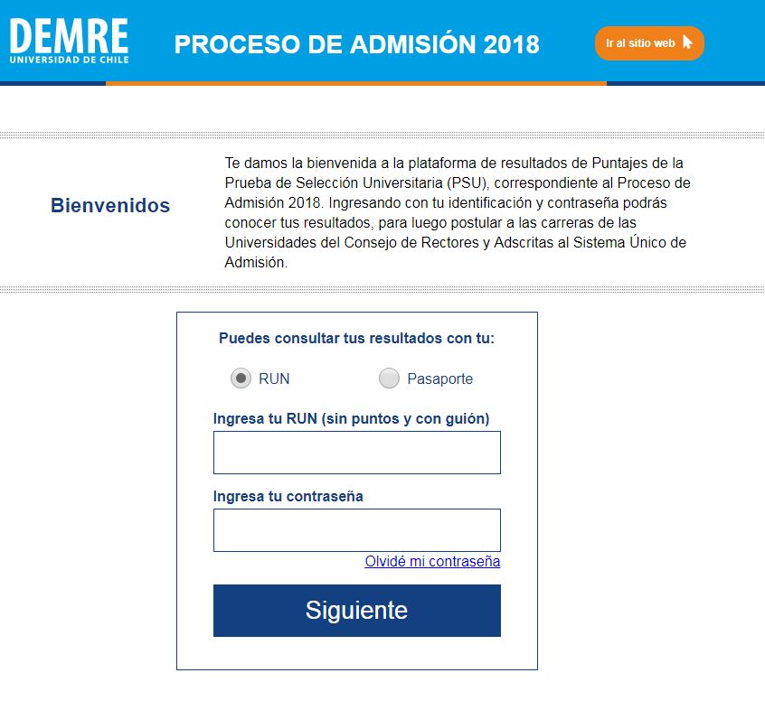 Hoy martes 26 de diciembre el Departamento de Evaluación, Medición y Registro Educacional (Demre) publicó los resultados oficiales de la Prueba de Selección Universitaria (PSU) que se llevó a cabo los días 27 y 28 de noviembre pasado.
