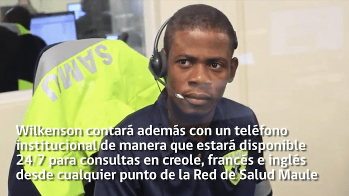 Wilkenson Francois es de Haití y se incorporó recientemente a trabajar como el primer radioperador traductor del SAMU en la base regional en Talca. Wilkenson habla muy bien español y en su país era estudiante de pedagogía. Trabajó en dos escuelas como profesor. Dice que se vino a Chile para “mejorar la vida”. Relata que tiene un amigo en Santiago quien le dijo que “era mejor venir a Chile que quedarse en Haití”. Allá quedó su familia formada por su madre, dos hermanas y dos hermanos. En Talca vive con dos primos y dos primas. Y tiene “polola”, como decimos en Chile.