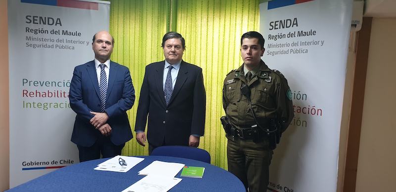 La instancia quedó conformada por el Director Regional del SENDA, Mario Fuenzalida; el fiscal regional, Julio Contardo, y el subteniente Matías Lara, jefe de la Comisión de Alcoholes de la Prefectura de Carabineros de Talca.
