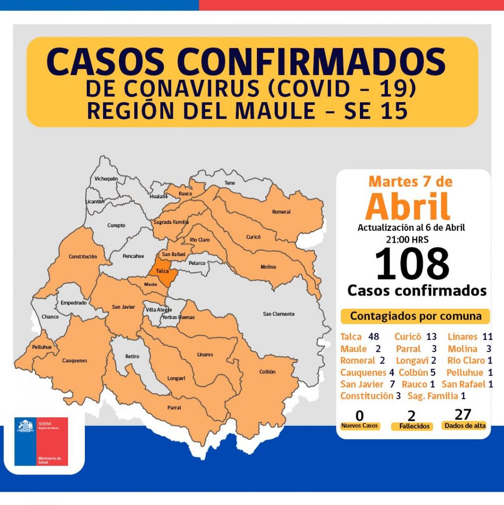Seremi de Salud confirmó 108 casos de Covid-19 y segundo fallecido en la Región del Maule