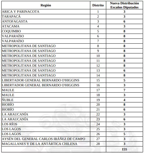 El Servicio Electoral (Servel) oficializó una nueva redistribución de los 155 escaños de la Cámara de Diputadas y Diputados, ajuste que modificará el número de representantes por distrito de cara a las elecciones parlamentarias de 2029. La actualización se realizó en base a los datos del Censo 2024, en cumplimiento de la normativa que obliga a revisar esta asignación cada diez años según la población de cada zona del país. La ley establece, además, que ningún distrito puede elegir menos de 3 ni más de 8 diputados.