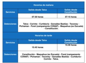 El itinerario de los buses entre Talca y Constitución es el siguiente: